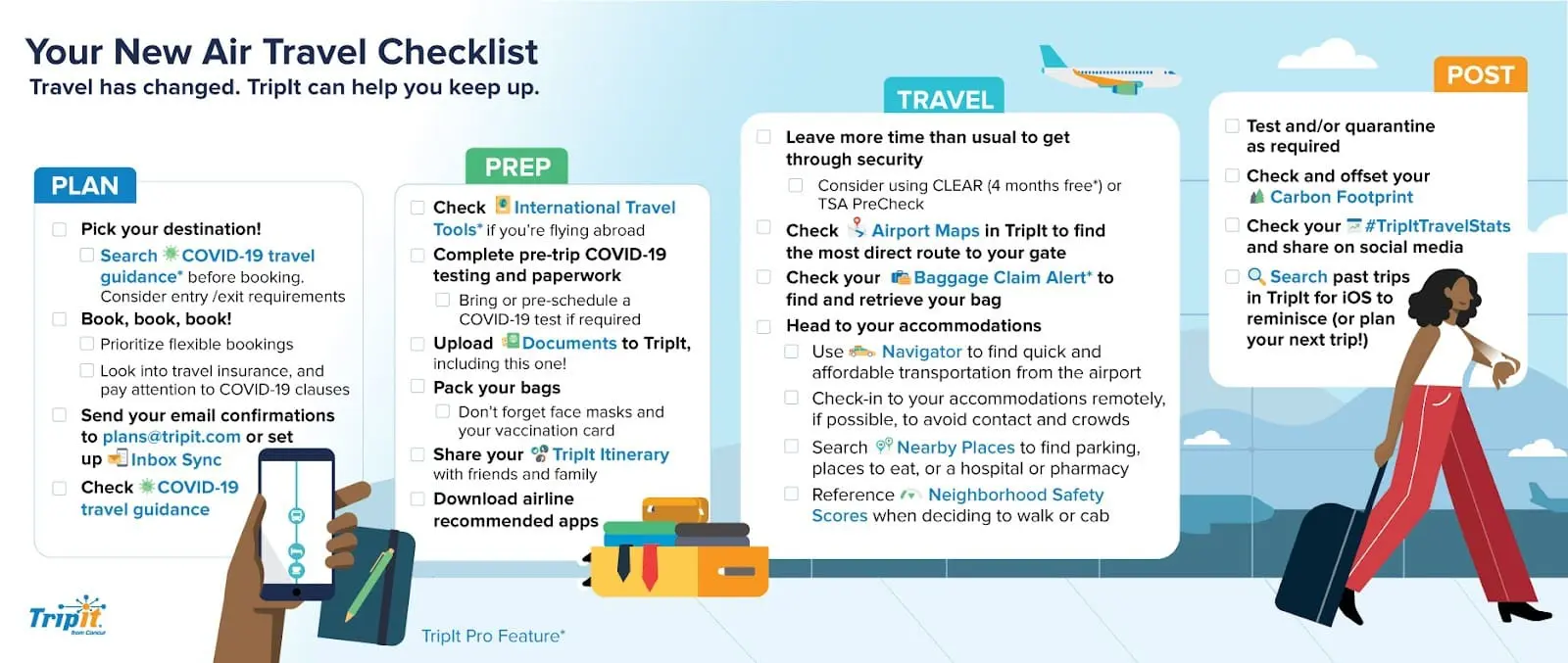 Want to learn more about TripIt? Concur has created a new air travel checklist to help you stay organized—and in the know—as you navigate an ever-changing world of travel. Check it out below: